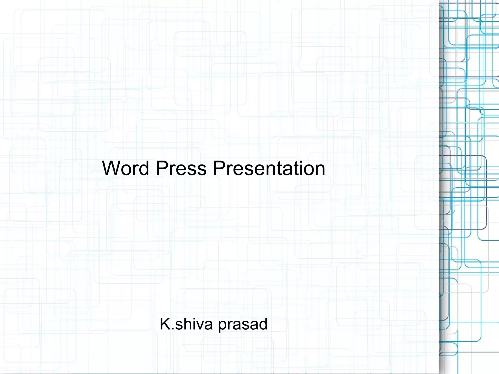 WordPress is a free, open-source content management system that allows users to build and manage dynamic websites and blogs. It provides templates called themes that control the visual design and layout of pages. Users can create and edit pages and blog posts called articles directly from their web browser using an easy-to-use control panel. Plugins extend WordPress functionality by adding features like search engine optimization tools. Reasons for using WordPress include the ability to easily update and customize the look and feel of a site using themes, to frequently publish and receive comments on blog posts, and to leverage additional features for search engine optimization and social media.