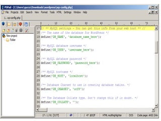WordPress is open source content management system software written in PHP that allows users to create and edit websites from a central control panel. It uses a directory and file structure with three main directories - wp-admin for administration, wp-content for custom files like themes and plugins, and wp-includes for core files and application logic. The GNU GPL license guarantees users freedom to use, study, share, and modify the WordPress software. Content on WordPress can include text, images, and is separate from the site structure and design.