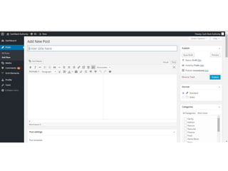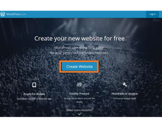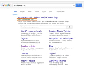 WordPress is open-source content management software that allows users to build beautiful websites and blogs. It was created in 2003 by developers Mike Little and is used by over 60 million websites, making it the most popular blogging platform. WordPress gives users flexibility through themes that can be customized without coding knowledge and plugins that expand functionality. It also offers mobile compatibility and multi-user access levels.