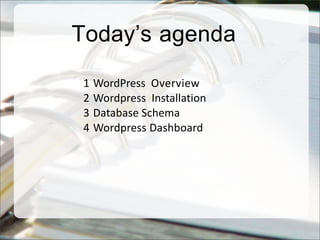 The document provides a detailed overview of WordPress, including its installation process, database schema, and dashboard functionalities. It covers the advantages and disadvantages of using WordPress, alongside key features like user and media management, and developing e-commerce websites using plugins like WooCommerce. Additionally, it outlines steps for hosting transfer and references various resources for further reading.