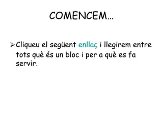 COMENCEM… Cliqueu elsegüent enllaç i llegirem entre tots què és un bloc i per a què es fa servir.