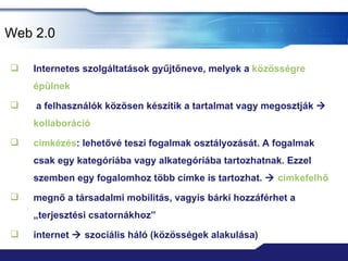 Internetes szolgáltatások gyűjtőneve, melyek a közösségre