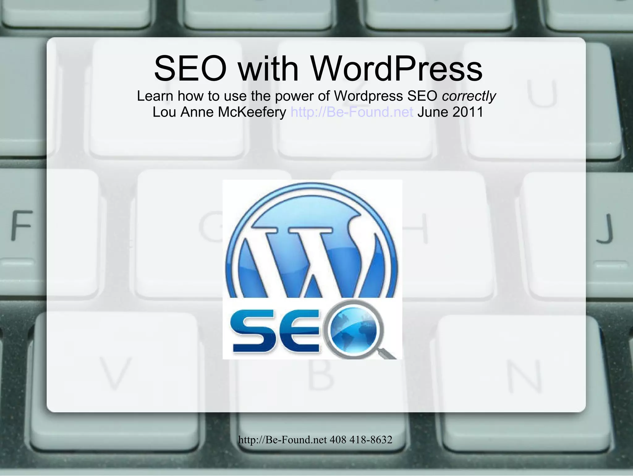 This document provides an overview of best practices for optimizing a WordPress site for search engine optimization (SEO). It discusses on-page and off-page SEO techniques, including proper site setup, permalinks, meta titles, XML sitemaps, and keyword research. It also recommends plugins for SEO-related tasks like XML sitemaps, analytics, and redirecting old pages. The risks of doing SEO without proper knowledge are also briefly mentioned.