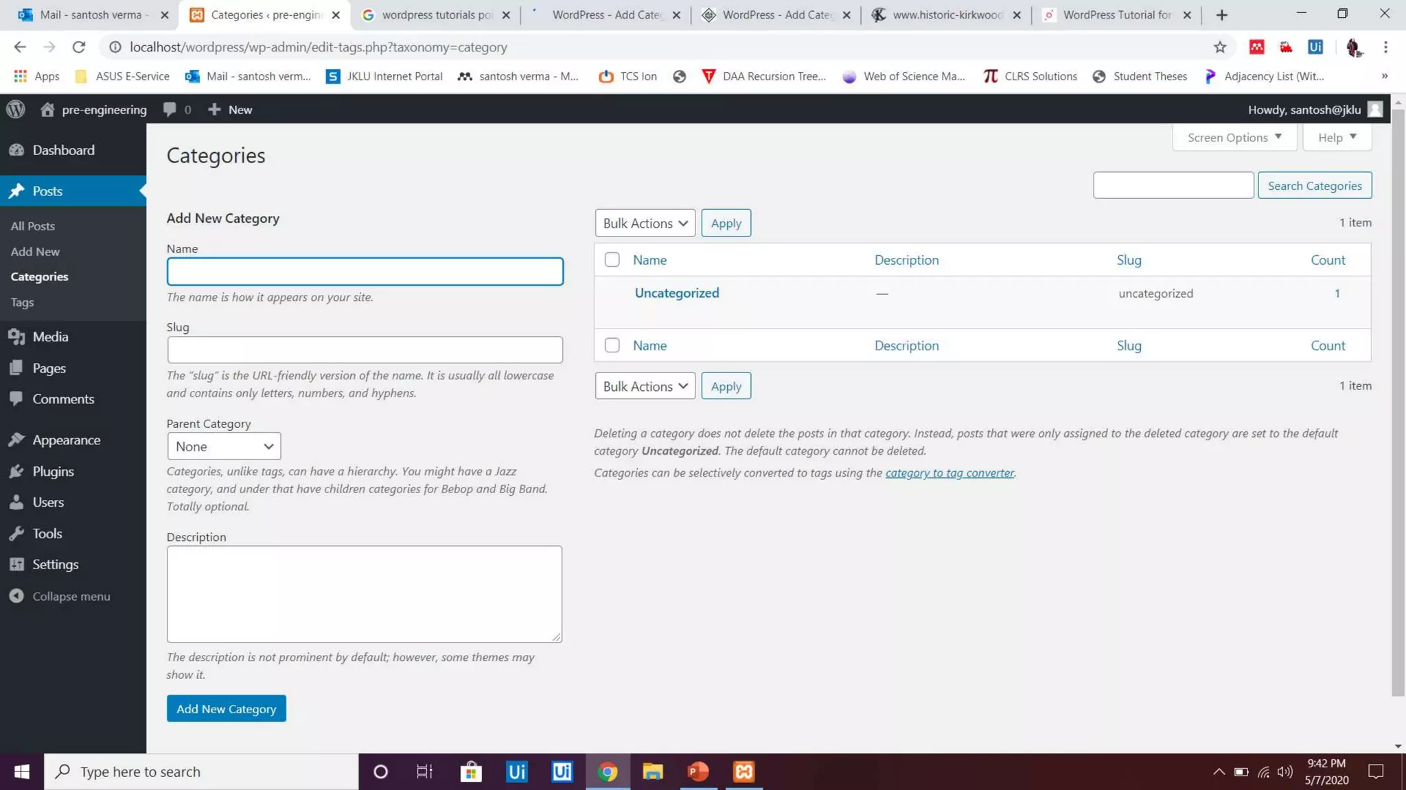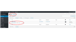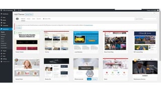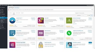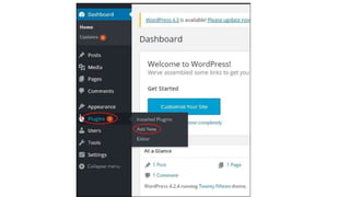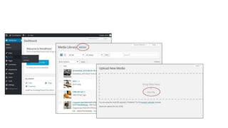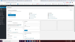 This document provides an overview of topics to be covered in a WordPress tutorial, including WordPress basics, settings, categories, posts, media, pages, tags, links, plugins, users, and appearance. It discusses installing WordPress and using the dashboard. It also covers adding, editing, and deleting categories, posts, media, pages, tags, and links. The document outlines viewing, installing, and customizing plugins, and managing user roles, users, themes, and widgets.