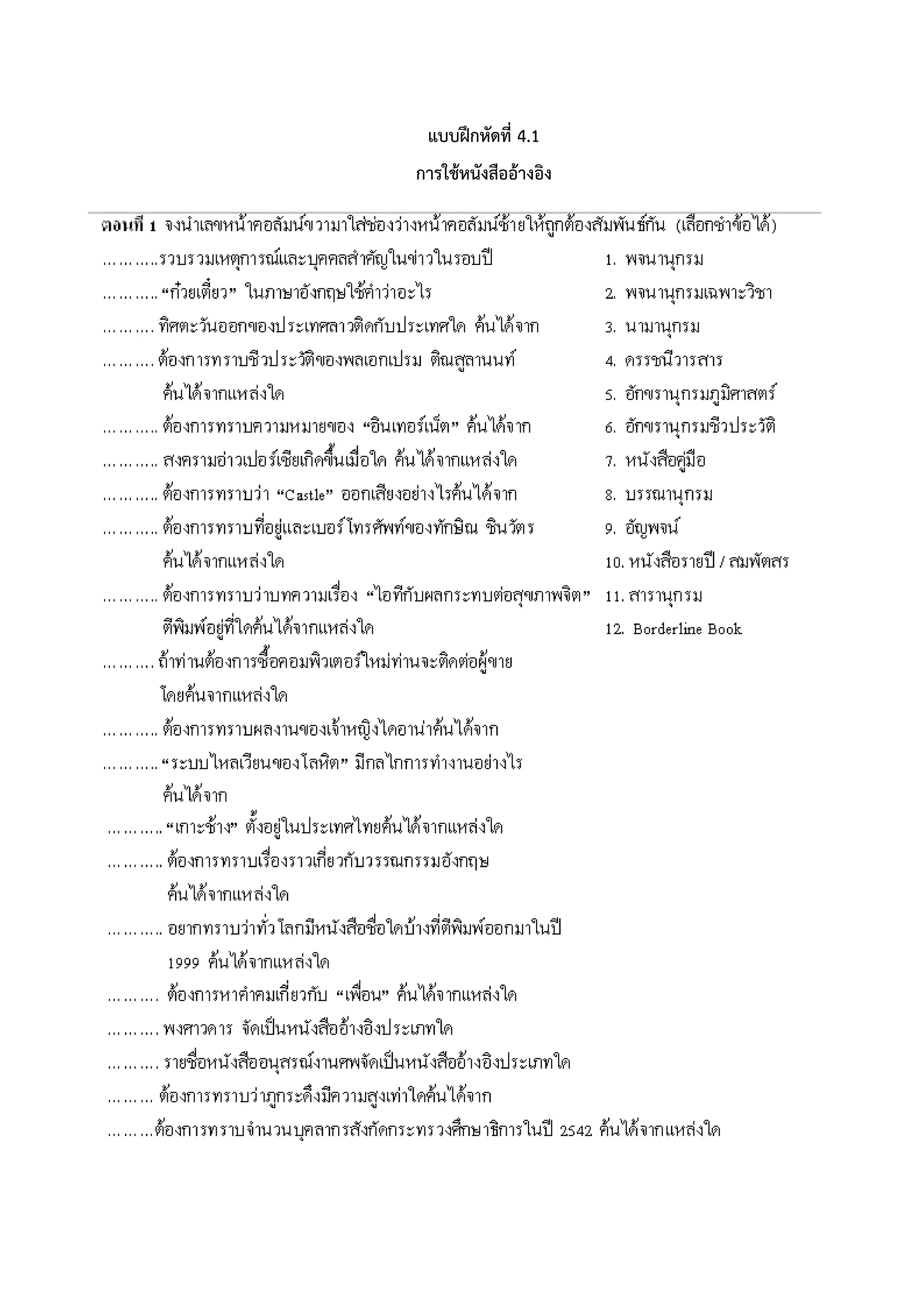 แบบฝึกหัดที่ 4.1 การใช้หนังสืออ้างอิง