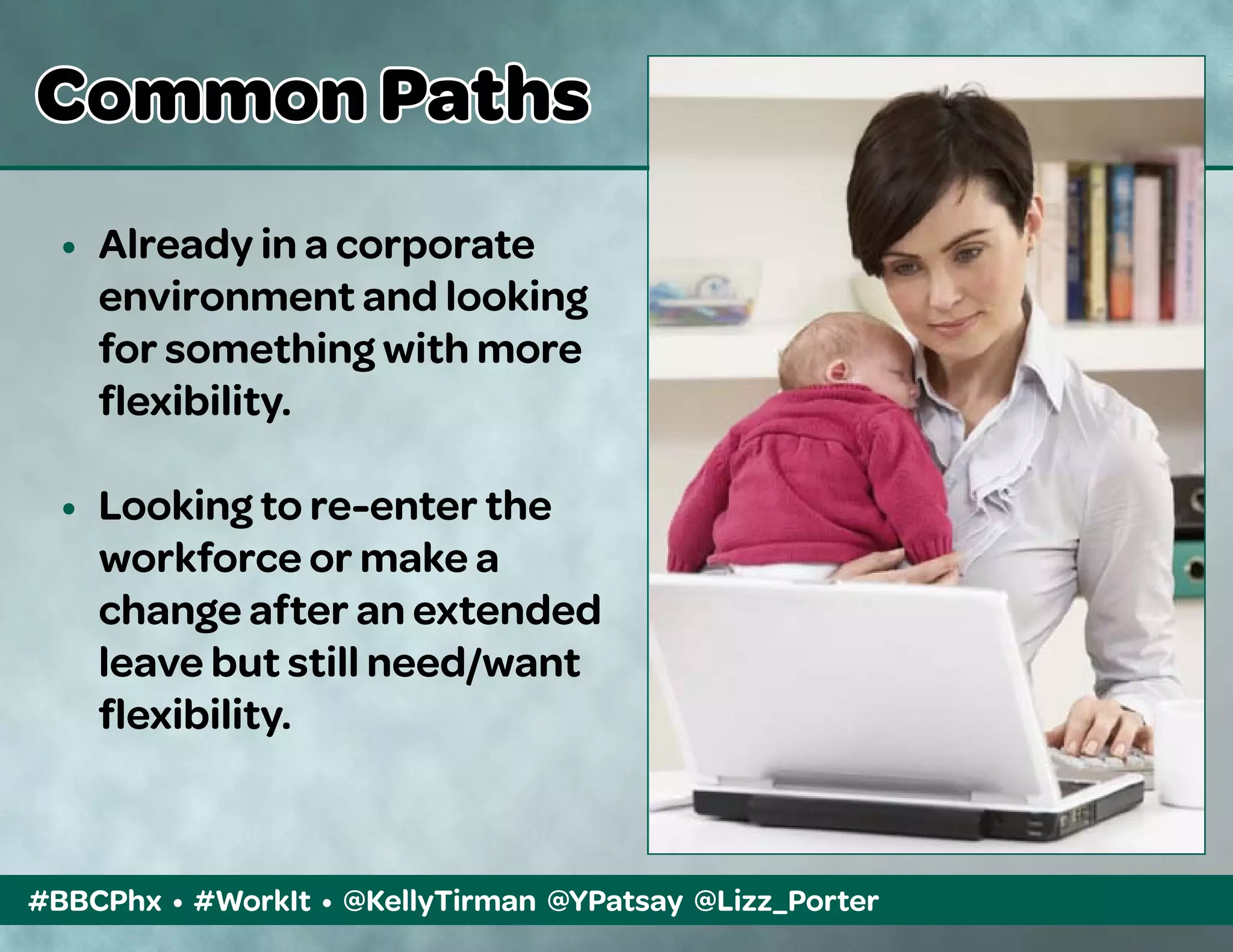 The document discusses how to land flexible virtual jobs for corporations using one's social media footprint. It provides examples of potential roles including social media manager, graphic designer, and writer. It also shares success stories of individuals working flexible jobs in community management, social media management, and other areas. The document provides tips for developing skills, maintaining corporate-friendly social profiles, and networking to find these types of opportunities.