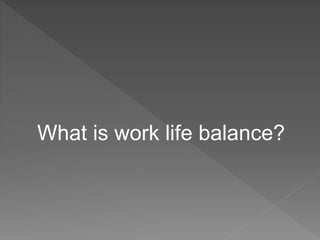 The document discusses the impact of globalization on work-life balance, highlighting that employees face increasing workplace demands, leading to stress and health issues. It emphasizes the importance of time and stress management for achieving work-life balance, encouraging employees to seek advice and adopt a positive attitude towards challenges. Additionally, it calls for effective communication of workplace policies to ensure that all employees, including women, can benefit from work-life balance initiatives.