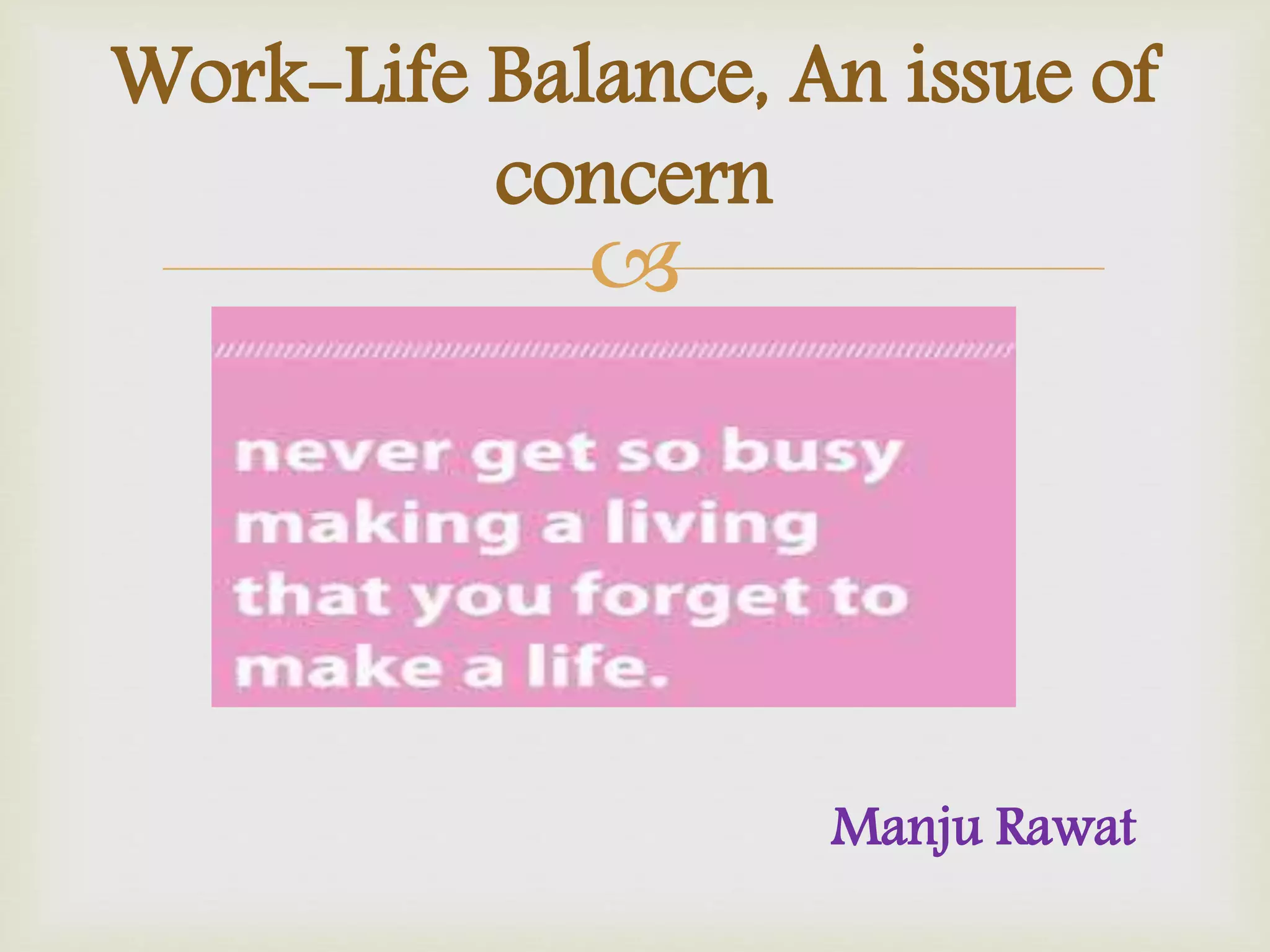 The document discusses the concept of work-life balance (WLB), highlighting the importance of prioritizing time between work and personal life. It debunks myths surrounding WLB, such as gender-related expectations and the misconception that balance means equal time at work and home. Solutions for achieving a better balance include setting priorities, saying no, and utilizing technology to enhance life satisfaction.