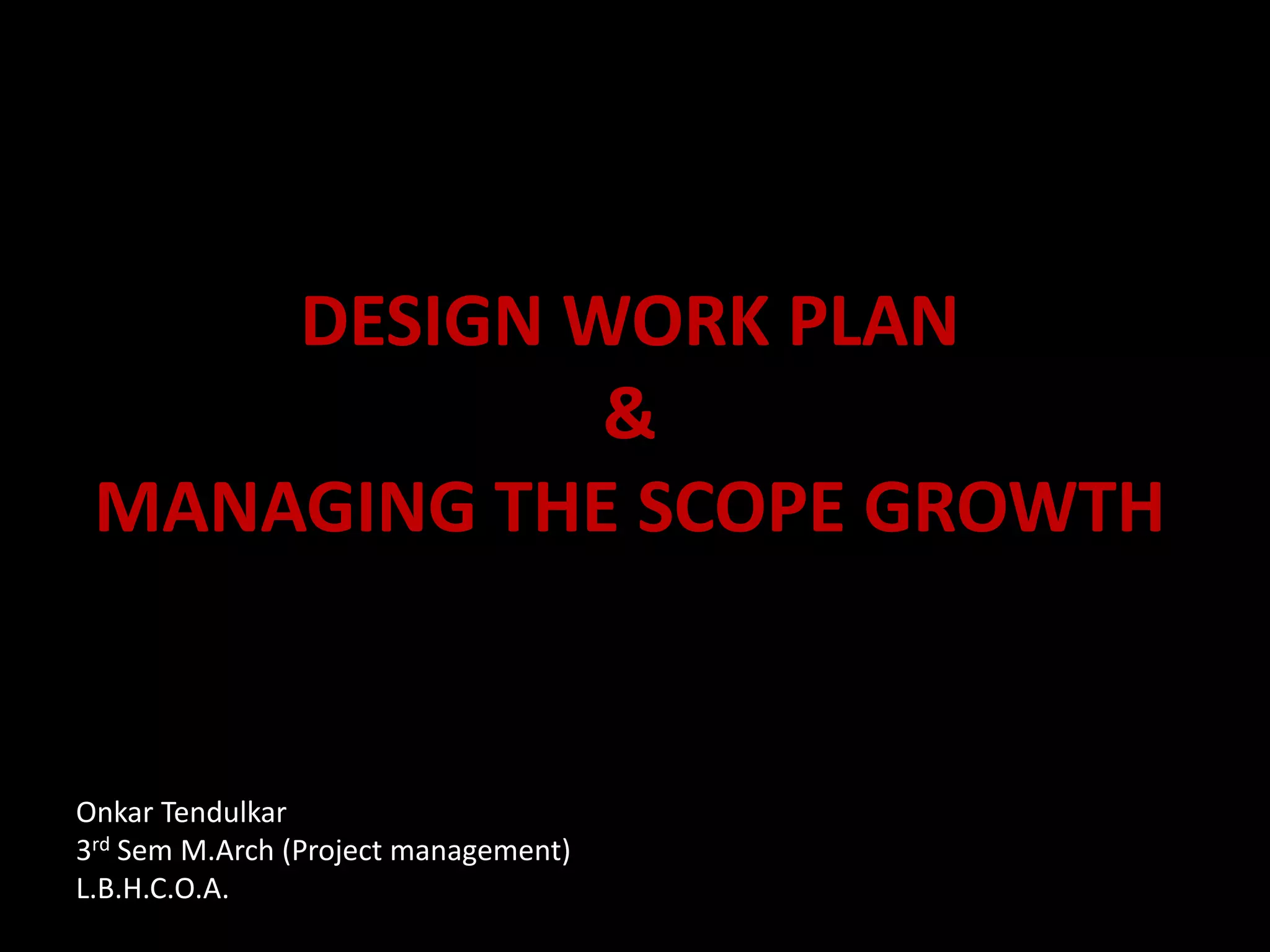 The document outlines the purpose and components of a design work plan, which is essential for organizing projects within time and budget constraints. It discusses the importance of integrating various tasks, monitoring scope, cost, and schedule, and provides steps for creating a work plan, highlighting common mistakes and strategies to avoid scope growth. Scope growth, caused by various factors, can lead to cost overruns and scheduling issues, and can be effectively managed by freezing the project scope after the conceptual design stage.