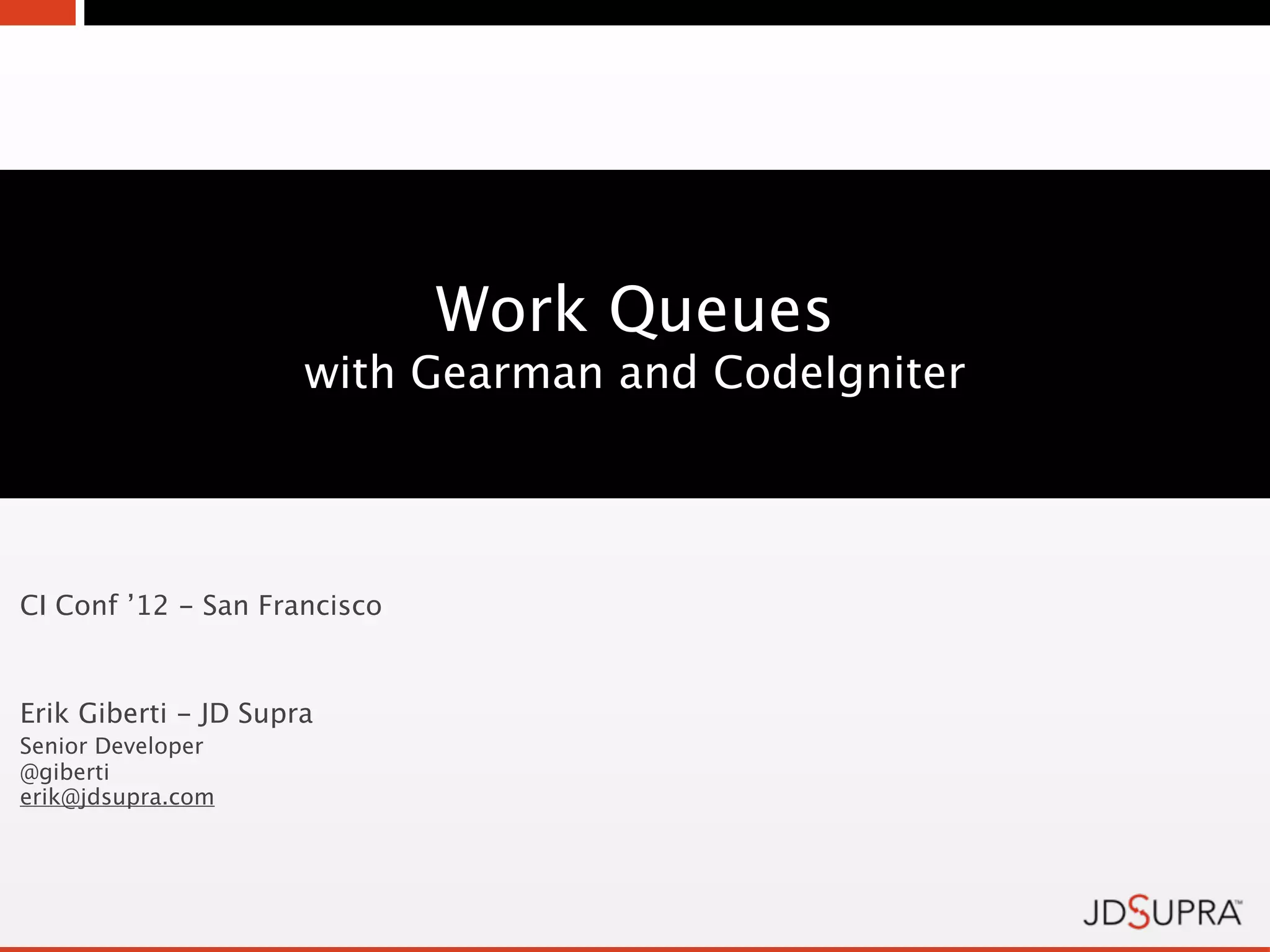 The document discusses using work queues with Gearman and CodeIgniter. It begins with an introduction to work queues, describing them as sequences of stored data or programs awaiting processing. It then discusses the client worker pattern for processing asynchronous jobs, some limitations of this approach, and how Gearman can help address those limitations by facilitating work distribution across languages and servers. The document provides instructions for installing and configuring Gearman to add work queue functionality.