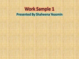 This document contains 3 unlabeled work samples by Shaheena Yeasmin. No other identifying information or context is provided about the content or purpose of the individual work samples. The document simply lists 3 work samples attributed to Shaheena Yeasmin without any other descriptive details.