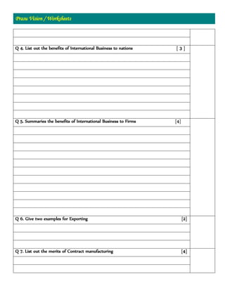 Q 3. Explain the Scope of International Business [ 4 ]](https://image.slidesharecdn.com/worksheetonchapter-11-180428134531/85/Work-sheet-on-chapter-11-1-320.jpg)