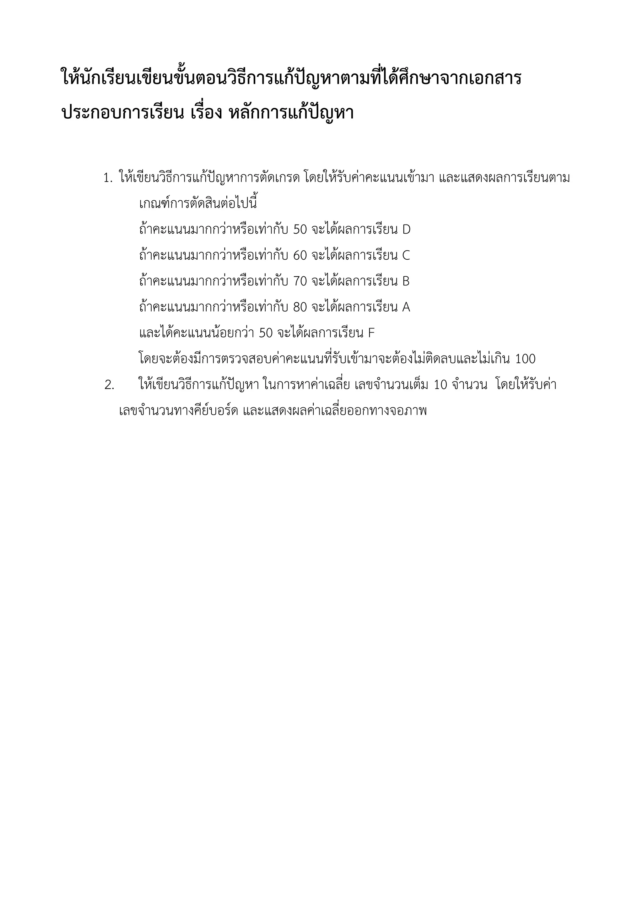 1.ใหเขยนวธการแกปญหาการตดเกรด โดยใหรบคาคะแนนเขามา และแสดงผลการเรยนตาม