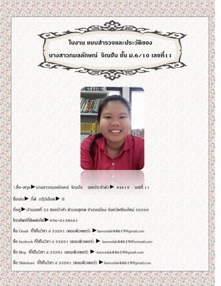 ใบงาน แบบสารวจและประวัติของ นางสาวกมลลักษณ์ จิณปัน