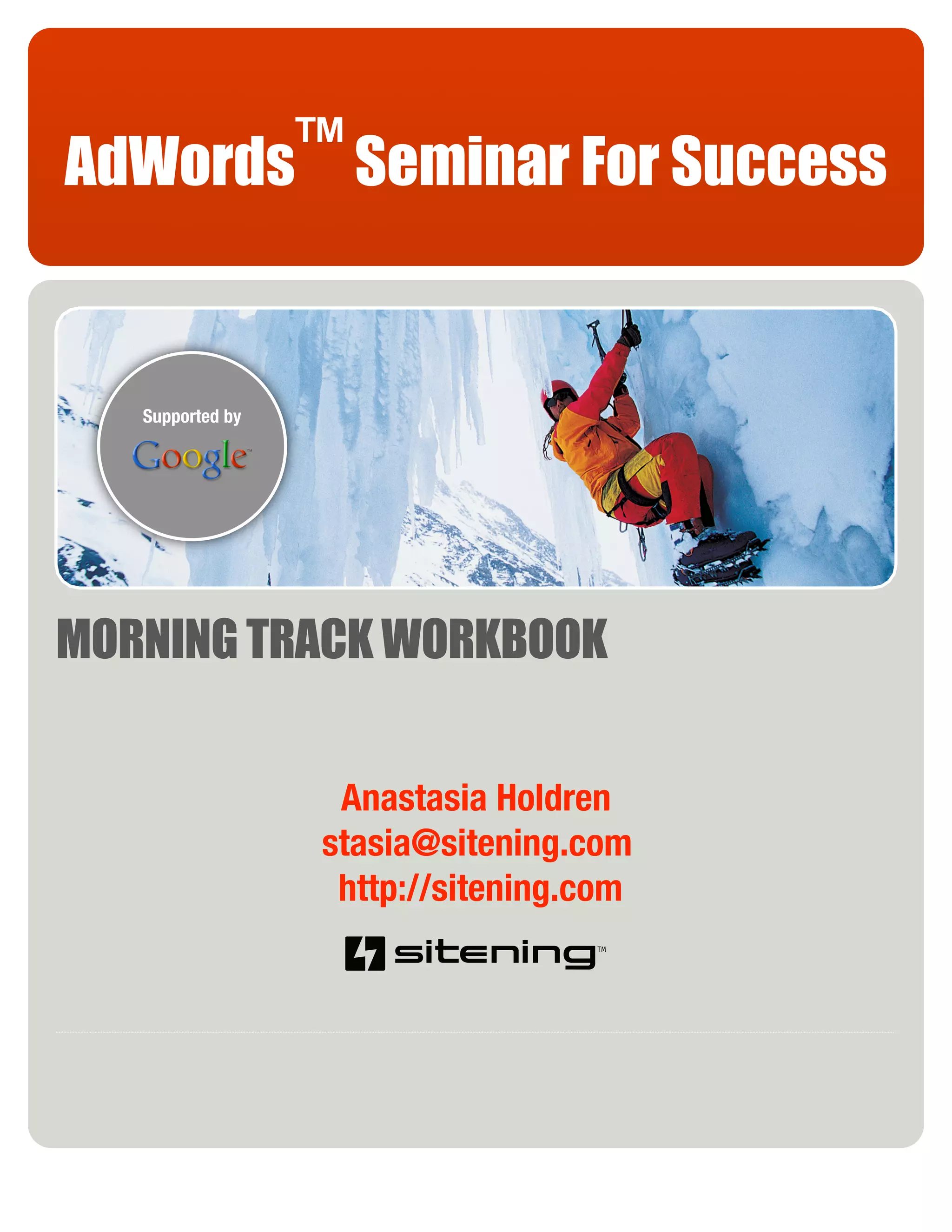 This document provides an overview of an AdWords seminar for success. It includes sections on introduction to online advertising and Google AdWords, account navigation, billing and reports, and beginning optimization. Key topics covered include types of online advertising, pay-per-click advertising, features of Google AdWords like the Google network and language targeting, proper account structure with campaigns and ad groups, understanding campaign statistics, and basic AdWords terminology. The document is intended to educate users on using Google AdWords for digital advertising.