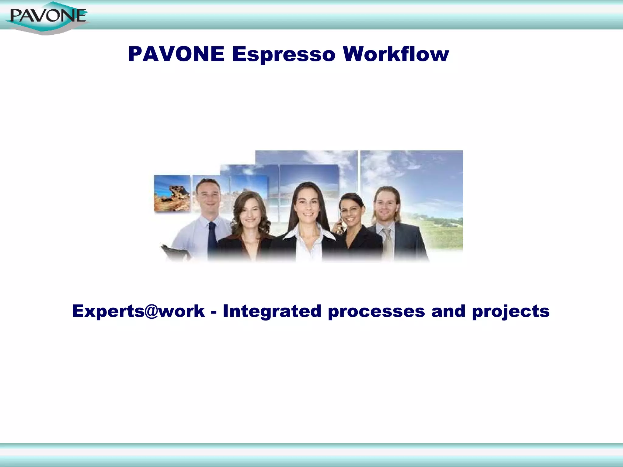 The document outlines Pavone's integrated workflow management systems designed to optimize business processes within collaborative, document-based environments. It details the software's capabilities, including process automation, flexibility, and user-friendly design, along with its applications for various business needs. Additionally, it emphasizes the successful implementation of the Pavone Workflow Collection, which provides ready-to-use, customizable applications for process execution.