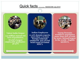 - India produces over 5.5 million graduates annually but only about 36-37% are employable. Engineering and management courses in India are seeing high vacancy rates of 40% and two-thirds respectively.