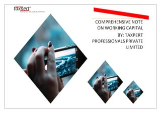 This document provides an overview of working capital, including its definition, relevance, management, calculation, requirements, and trends. It defines working capital as the difference between current assets and current liabilities. Working capital is essential for business operations and reflects a company's liquidity and financial health. The document discusses calculating working capital, analyzing trends over time, measuring efficiency through turnover ratios, and assessing a company's liquidity position.