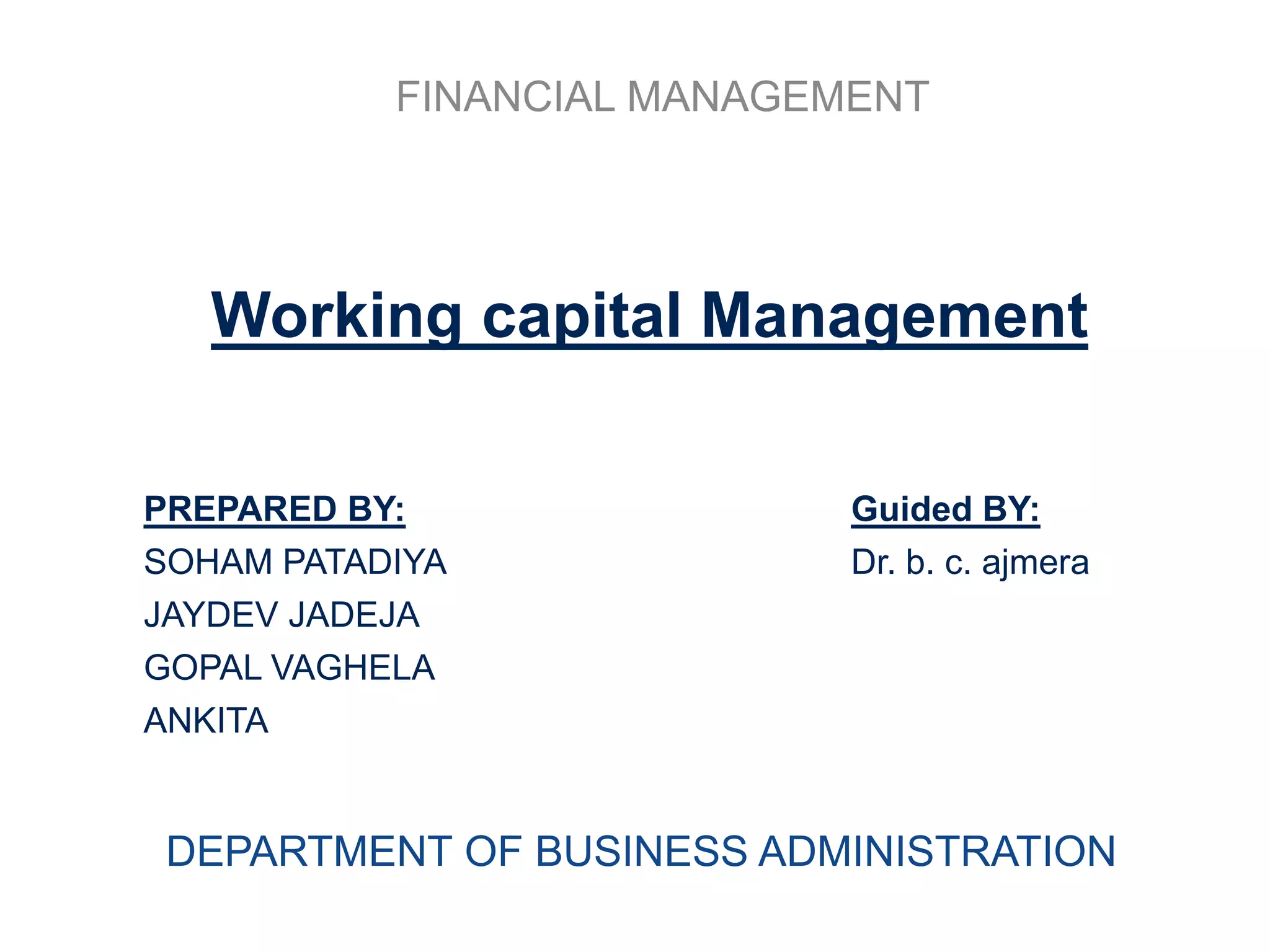 This document discusses working capital management and inventory management. It defines working capital and its sources, including short term sources like factoring, installment credit, bank overdrafts, commercial papers, and letters of credit. Long term sources include equity capital and loans. It also discusses estimating working capital needs using different approaches. The document then defines inventory and its management, including inventory turnover ratio and inventory control techniques like ABC analysis.