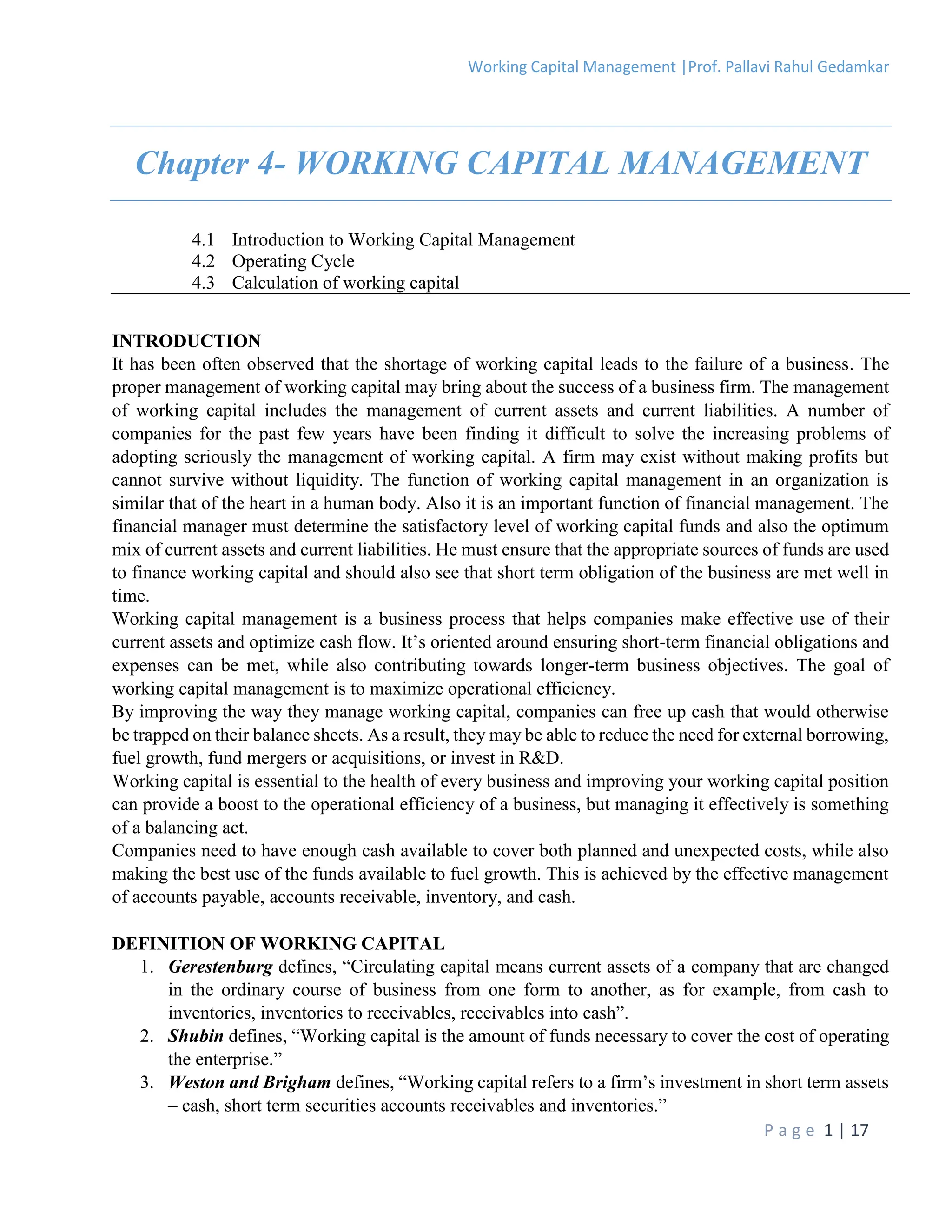 The document outlines the critical aspects of working capital management, emphasizing its role in ensuring liquidity and operational efficiency for businesses. It defines working capital and discusses its significance, types, and the importance of balancing profitability and solvency while managing current assets and liabilities. Key factors influencing working capital requirements, such as the operating cycle, nature of business, and financial management policies, are also examined.