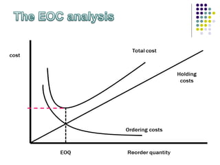 - Key concepts covered include the cash operating cycle, economic order quantity (EOQ) formula, ABC inventory classification, and just-in-time (JIT) techniques.