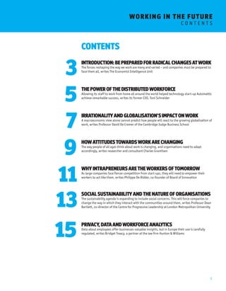 The report by the Economist Intelligence Unit examines the significant changes reshaping the workplace, emphasizing the rise of distributed workforces, the impact of globalization, and the evolving attitudes towards work among employees. It highlights how businesses must adapt to enhance employee engagement, harness global talent, and utilize technology effectively to create a sustainable and motivating work environment. Key insights from various experts underscore the importance of flexibility, self-determination, and a sense of purpose in the future of work.