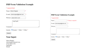 3) It's important to validate form data for security, like checking for required fields and proper email/URL formats. Functions like filter_var() and regular expressions can help validate different field types.