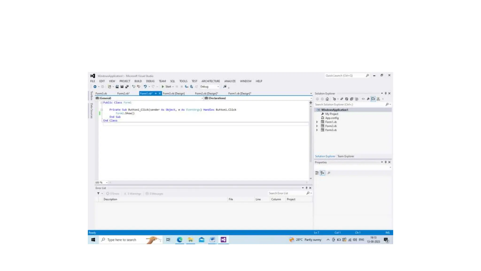 This document shows code for working with multiple forms in Visual Basic. It contains two classes called Form1 that each have a button with an event handler that displays Form1. When the button is clicked on either form, it will show that form without closing the other instance. This allows multiple instances of the same form to be open simultaneously.
