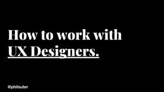 This document provides advice for product managers on how to work effectively with UX designers. It discusses focusing on the user and iterating quickly through prototypes based on user research and feedback. It emphasizes trusting the expertise of teammates, prioritizing useful and usable solutions over unnecessary features, and protecting the team from distractions to allow focus on high-quality, coherent experiences for users.