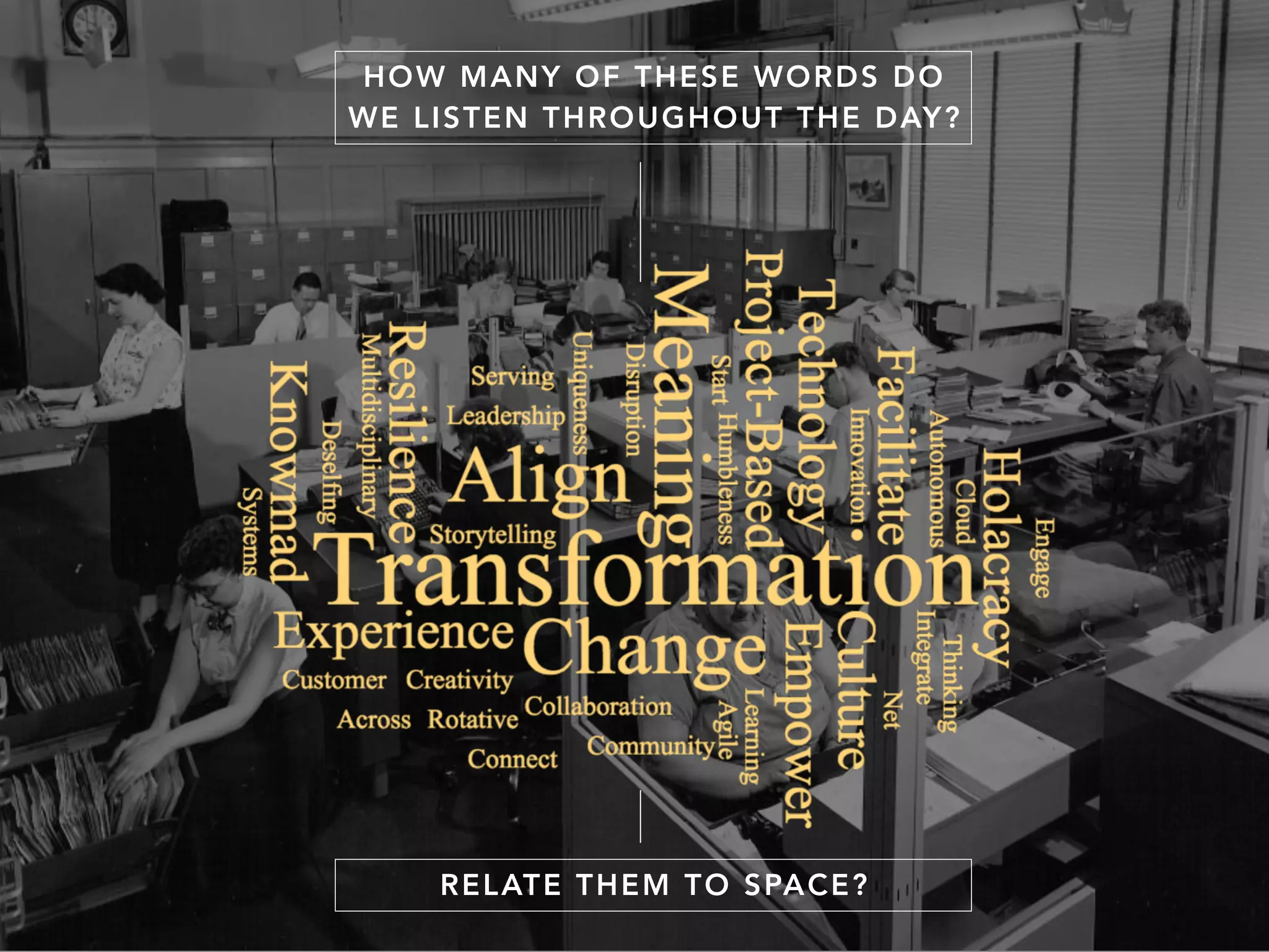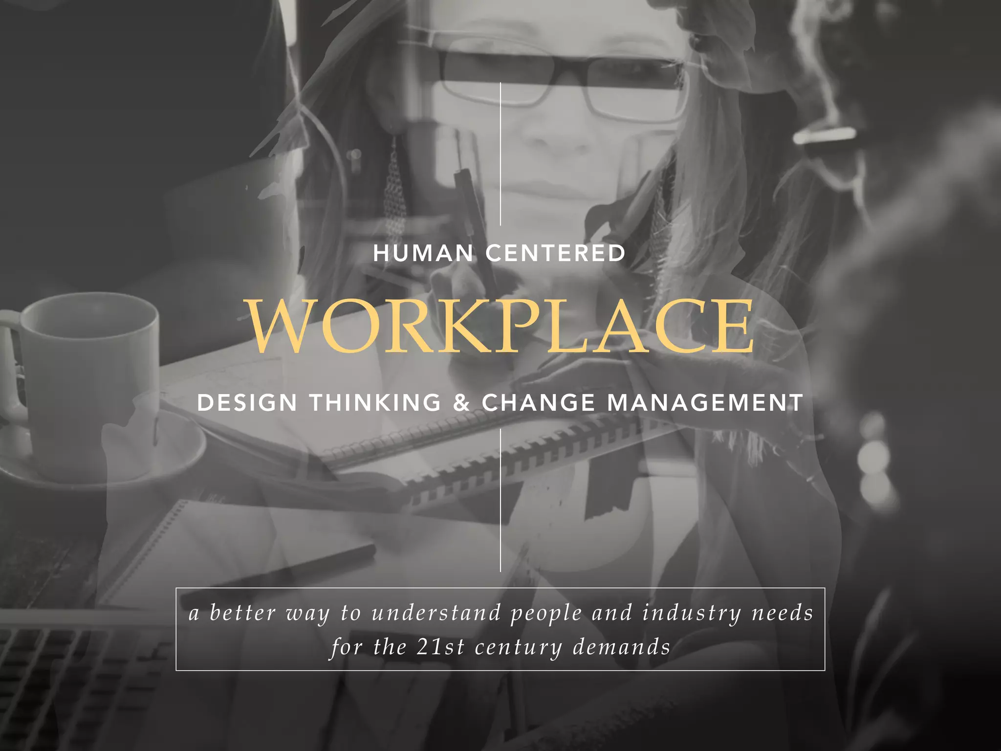 The document discusses workplace design thinking and change management with a focus on human-centered strategies to meet 21st-century industry needs. It emphasizes the importance of understanding employee needs and optimizing workspace wellness through design research, collaboration, and continuous learning. The goal is to create environments that foster happiness, innovation, and business growth.