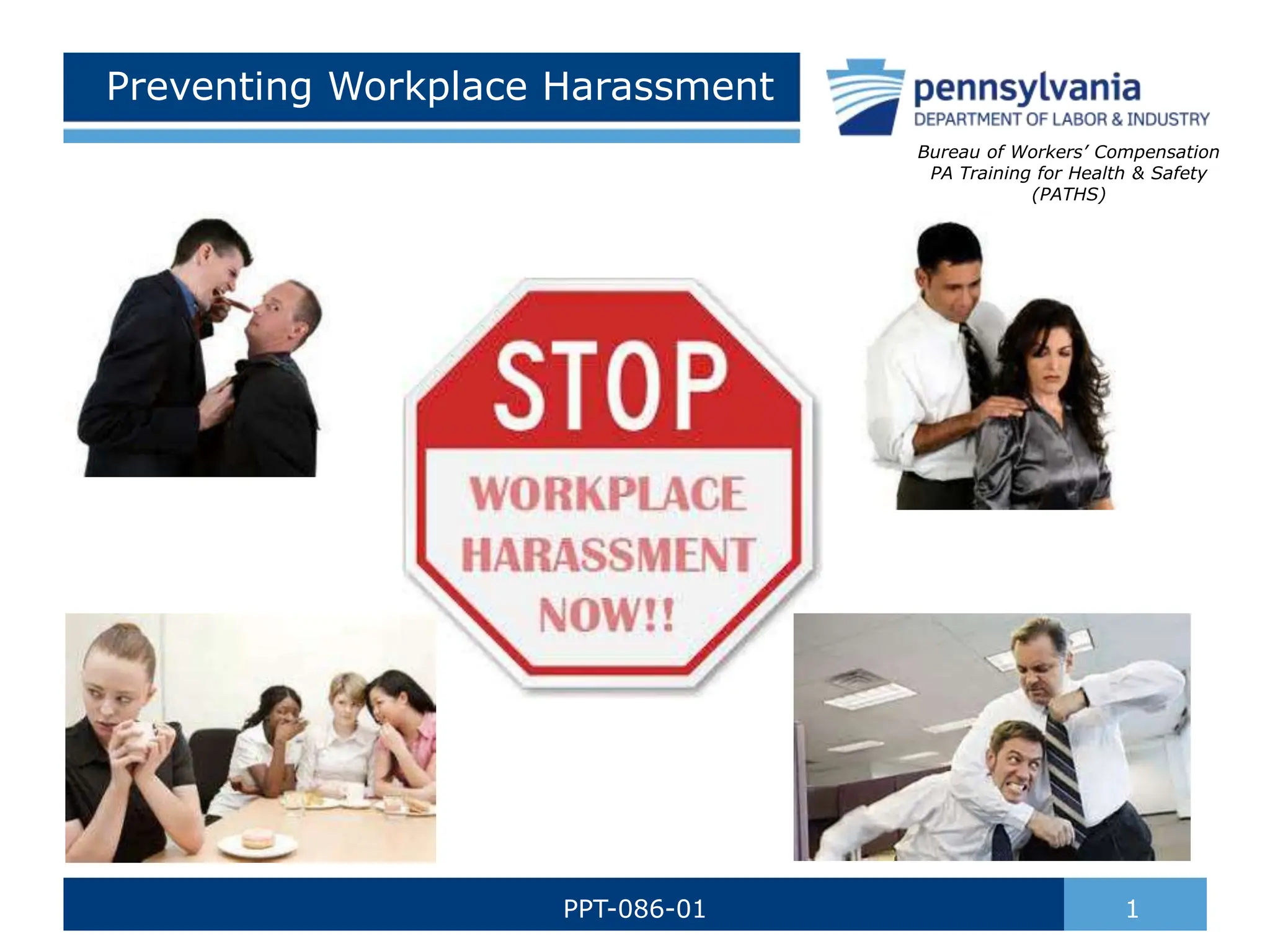 The document defines harassment and discusses preventing harassment in the workplace. It outlines different types of harassment including sexual harassment, hostile work environment, and bullying. It advises employees to report harassment to a supervisor or HR and explains supervisors' responsibilities to address harassment, including taking complaints seriously, protecting against retaliation, and maintaining confidentiality. The document provides tips for employees to protect themselves and maintain a respectful workplace.