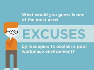 The document discusses five workplace trends aimed at creating a great work environment, emphasizing the importance of trust, pride, and camaraderie between managers and employees. It encourages managers to eliminate the excuse of lacking time and offers actionable suggestions such as thoughtful recognition, thorough onboarding, and demonstrating the real-world impact of employees' work. By focusing on these relationships, managers can foster a more positive and engaged workplace culture.