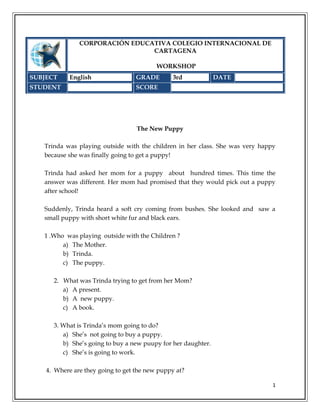 Trinda was playing outside and was excited to get a puppy. She had asked her mom for a puppy many times before. This time, her mom promised they would pick out a puppy after school. While playing, Trinda heard crying coming from bushes and discovered a small puppy with short white fur and black ears.