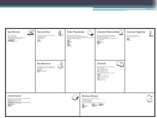The document outlines the 'Business Model Canvas,' detailing components such as customer segments, value propositions, channels, customer relationships, revenue streams, key resources, key activities, key partners, and cost structure. It emphasizes the importance of understanding customer needs and optimizing the business model for competitive advantage, using Apple's iPod/iTunes model as an example of effective integration. Additionally, it includes a practical exercise for participants to create business models tailored to specific customer segments.
