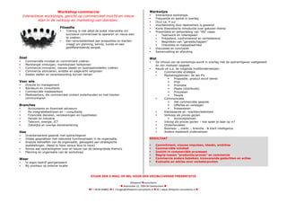 Commerciële mindset en commitment creëren De inhoud van de workshops wordt in overleg met de opdrachtgever vastgesteld