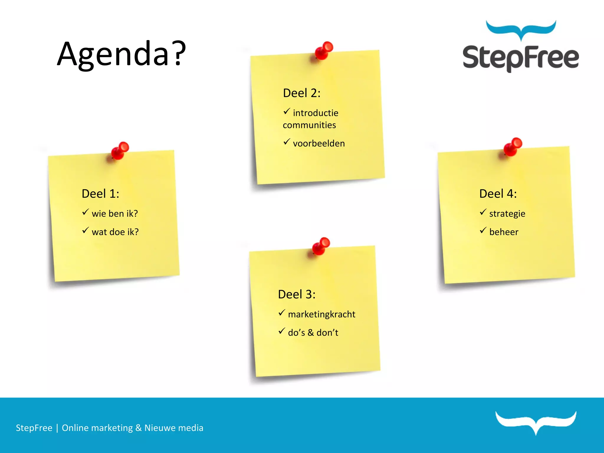 StepFree | Onlinemarketing & Nieuwe media Deel 2 Introductie in communities Diverse voorbeelden