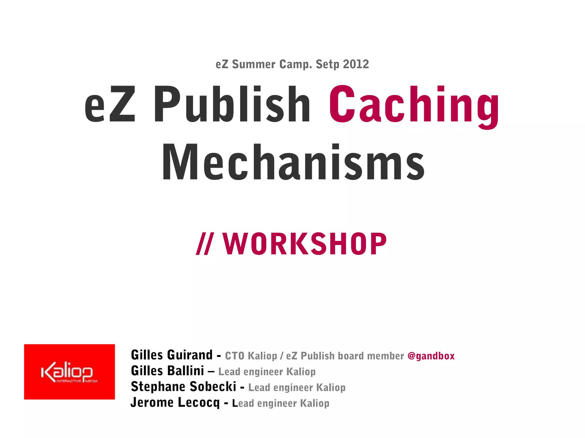The document discusses caching mechanisms in eZ Publish including template compilation, INI caching, view caching, cache blocks, and PHP caching. It provides examples of how to compile templates from text files, use dynamic settings with shared compiled templates, log viewcache activity, expire specific cache blocks and the entire viewcache, and generate a PHP-based cache file. The document also addresses questions around caching and explores caching mechanisms in more detail.