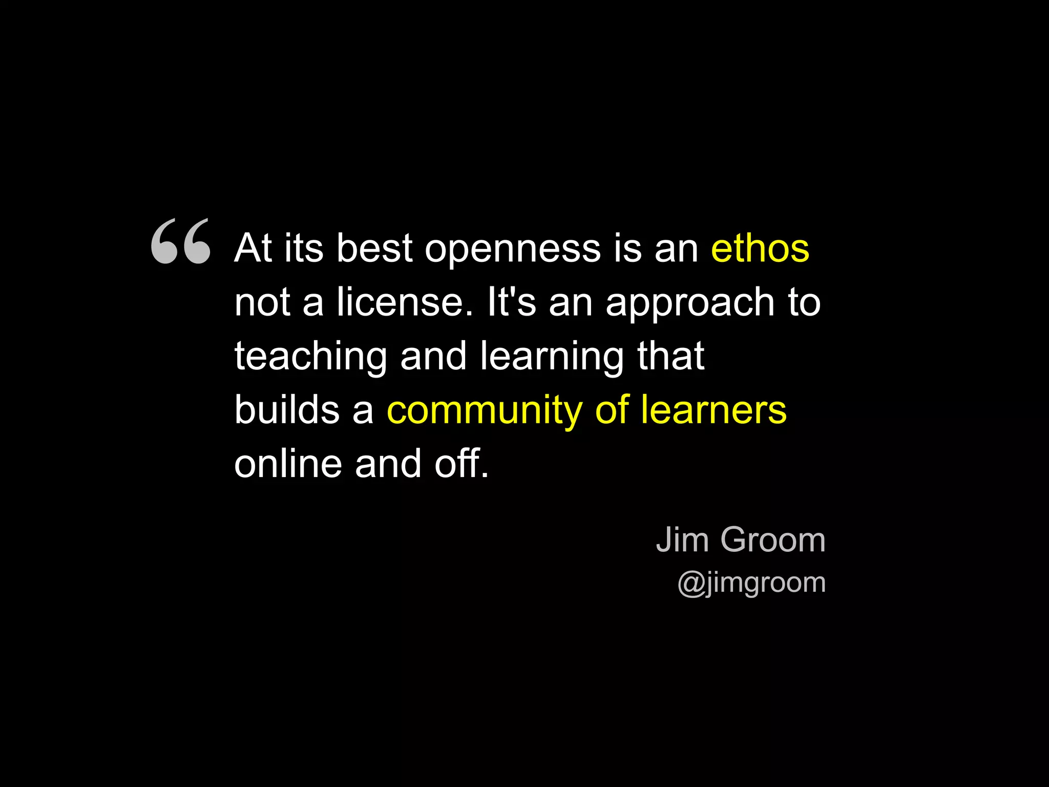 The document discusses the evolving nature of education towards openness and networked learning, emphasizing the role of Creative Commons licenses in sharing and creating open educational resources (OERs). It highlights the need for academic staff to engage in digital practices to support students in navigating informal and formal learning environments, fostering authentic interactions and collaboration. The concept of the 'third space' is introduced as a place where student and teacher experiences intersect, promoting a community-oriented approach to knowledge sharing.