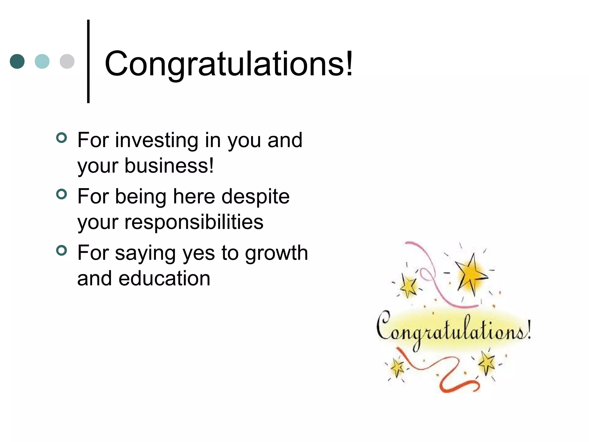 This document outlines the agenda and content for a business productivity workshop. The workshop encourages participants to invest in themselves and their businesses. It teaches strategies to prioritize tasks, manage information and communication more effectively, and eliminate time wasters. Participants learn to create action plans with clarity and focus to feel more productive and financially secure. They are given resources and checklists to continue implementing strategies after the workshop.