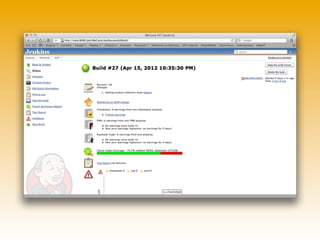 The document outlines a workshop on quality assurance for PHP projects, emphasizing the importance of QA in safeguarding code, early bug detection, and progress tracking. It discusses various tools and methods for implementing QA, including syntax checking, documentation, and unit testing, while also highlighting the costs associated with bugs and the benefits of testing for maintainability and confidence. Additionally, it provides code snippets and setups for common testing scenarios using PHPUnit, alongside best practices for ensuring secure and reliable code.