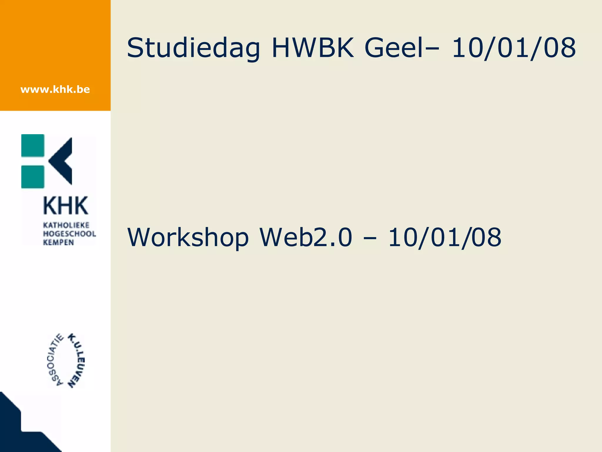 Web2.0 workshop Vragen:jef.de.pooter@khk.be Creative Commons licentie: Op dit werk is een Creative Commons Licentie van toepassing. Bron: “Here comes another bubble”: http://www.youtube.com/watch?v=I6IQ_FOCE6I