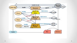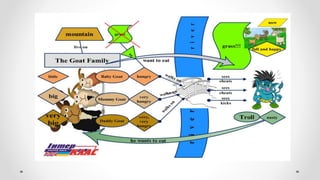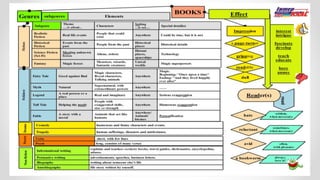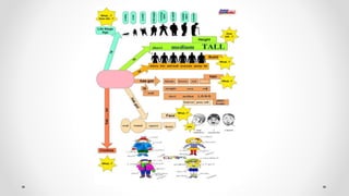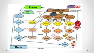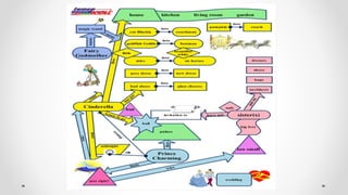 The document outlines an instructional framework for improving reading comprehension through scaffolding and concept mapping activities, emphasizing techniques to decode and understand texts. Key stages of reading development are discussed, alongside methods such as Jolly Phonics and Alphablocks to enhance literacy in early education. It further explores comprehension strategies, character analysis, and creative inference activities to foster deeper engagement with literature.