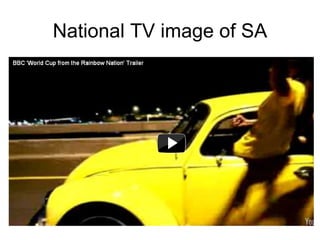 The document discusses South Africa hosting the 2010 FIFA World Cup. It analyzes geographic factors that influenced South Africa being chosen as the host country such as accessibility via flights and internal transportation infrastructure. It also examines the location of venues across South Africa and the short and long term costs and benefits of hosting the event at local and national scales, including economic impacts both positive and negative.