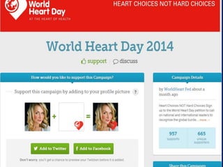 World Heart Day, celebrated on September 29, aims to raise awareness about cardiovascular diseases (CVD), which are the leading cause of death globally, particularly in low and middle-income countries. A significant portion of CVD deaths are preventable by controlling risk factors like tobacco use, unhealthy diets, physical inactivity, and harmful alcohol consumption. The document advocates for a multi-level approach to address these issues, emphasizing the importance of individual choices, community support, and national policies to promote heart health.