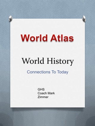 This document appears to be about world history and making connections to current times. It mentions GHS, which could refer to a high school, and Coach Mark Zimmer. Overall, the document seems to be related to teaching world history and showing relevance to students' lives today, possibly at a school with a coach named Mark Zimmer.