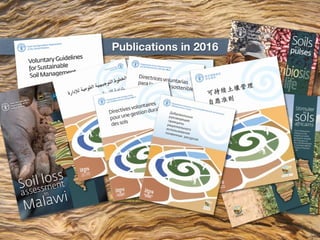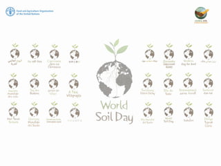 The fifth Global Soil Partnership Plenary Assembly highlights the importance of soils for food security, climate resilience, and poverty alleviation, while promoting World Soil Day (WSD) to raise global awareness about soil significance. The document outlines extensive communication efforts, including social media engagement, printed materials, and international events that celebrate soil health and educate the public. Looking ahead, the partnership aims to continue its outreach with planned themes for future celebrations and encourages collaboration and financial support from member countries to enhance soil conservation efforts.