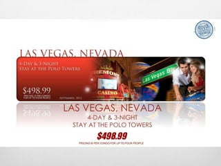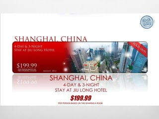 The document advertises discounted vacation packages to Las Vegas, Rome, and Shanghai. It promotes stays at specific hotels in each city for 4 days and 3 nights, and includes amenities like kitchenettes, tours, and guides. It encourages the reader to contact the representative by phone or text to book a trip and become a member for more discounted travel opportunities.