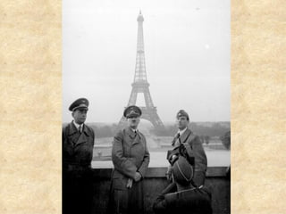 World War II was the largest war in human history, involving countries around the globe from 1939 to 1945. Over 70 million people were killed by the end of the war. The war was sparked by the aftermath of World War I and rise of totalitarian regimes in Germany, Italy, and Japan led by Hitler, Mussolini, and Tojo seeking to expand their territories. The war began when Germany invaded Poland in 1939 and soon involved most major world powers aligned into two opposing military alliances: the Allies and the Axis powers.
