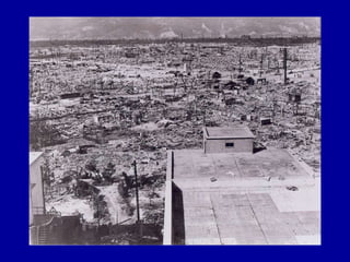 The Japanese attacked Pearl Harbor in 1941, hoping to destroy the US Navy and force American acceptance of Japanese dominance in the Pacific. However, the attack united Americans and convinced them to enter the war against Japan. By 1942, the Japanese controlled much of Southeast Asia and the Pacific, but Allied victories at the Battles of the Coral Sea and Midway turned the tide. US forces led by MacArthur began moving through the Pacific islands toward Japan in 1942. Atomic bombs were dropped on Hiroshima and Nagasaki in 1945, destroying the cities and killing thousands, after which Japan surrendered, ending World War II.