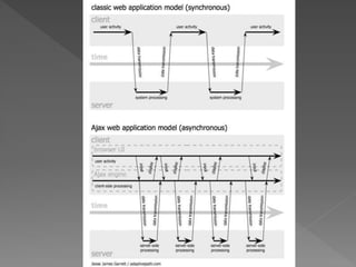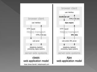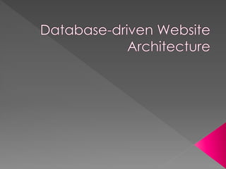 The document discusses the basic concepts of web architecture including HTML, URIs, HTTP, cookies, database-driven websites, AJAX, web services, XML, and JSON. It explains that Tim Berners-Lee developed HTML, URLs, and HTTP in 1989 to allow scientists to browse each other's papers on the internet. The web uses a two-tiered client-server architecture with the browser displaying content from the web server.
